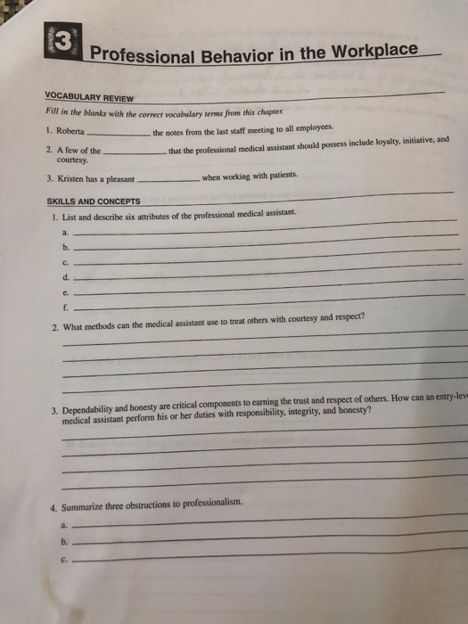 Solved 3 Professional Behavior In The Workplace Vocabular
